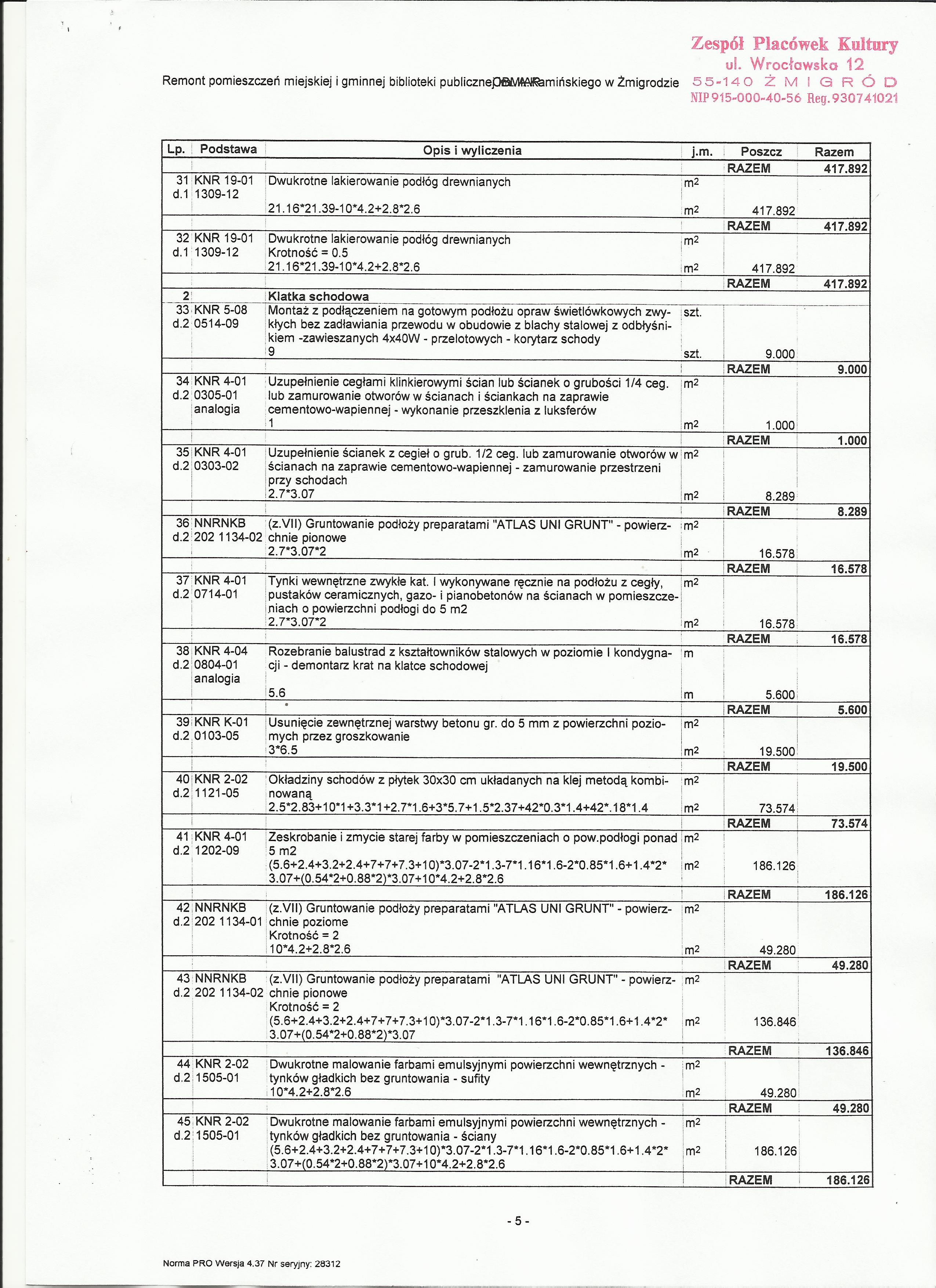 Przedmiar: str.1, str.2, str.3, str.4, str.5